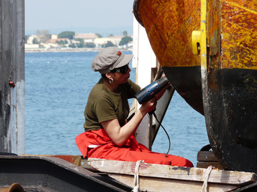 « Loulou » et Marie-O peignant « l’Andrea » pour la Trobada de Collioure
