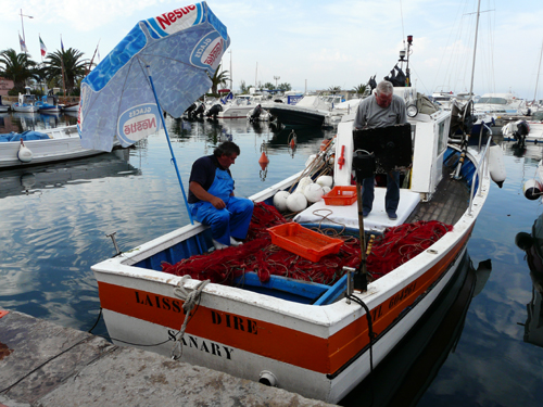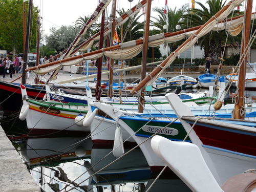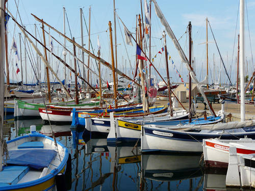 Dans le petit port, une armada de barques en bois, souvent à voile latine, bien placées grâce à une entente avec M. le Maire, avec un bateau classé d’intérêt patrimonial, et des capians de toutes formes : effet superbe !