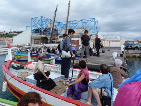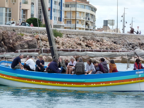 Nous, voiles latines de Sète, Bouzigues et Palavas soit 4 catalanes et une barquette, avons embarqué des poètes, Danièle Estèbe-Hoursiangou, Moncef Ghachem … avec leur public vers le cimetière marin où est enterré un des leurs, Paul Valéry …ce fut une belle rencontre sur notre Méditerranée à tous… et voilà les premières images