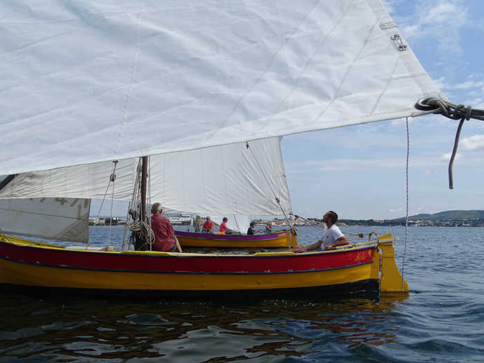 Nous sommes venus avec un « Aven » breton « Fleur de Ria » grée au tiers et avec « Forban » un canot misainer du Nord bordé à clins.