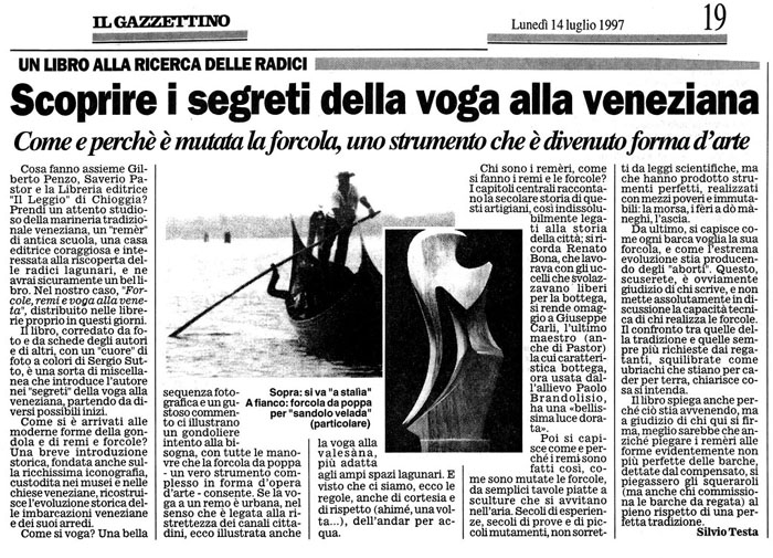 Plus précisément de la « Forcola » ou fourche utilisée depuis des siècles par les gondoliers.