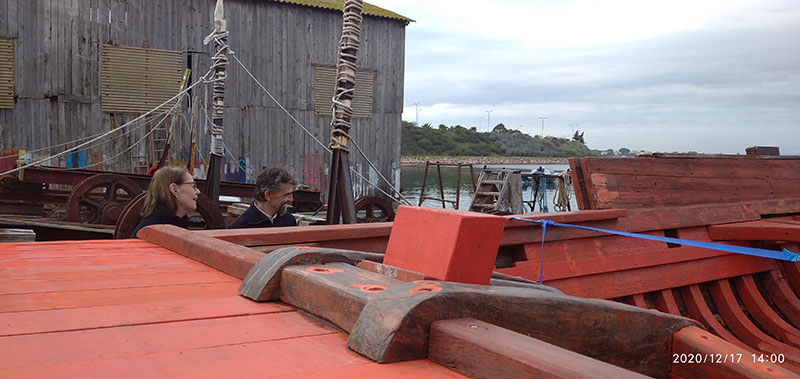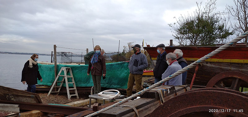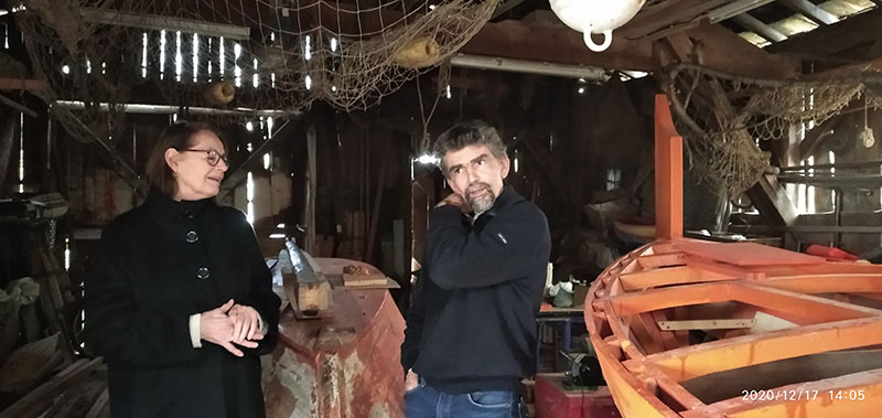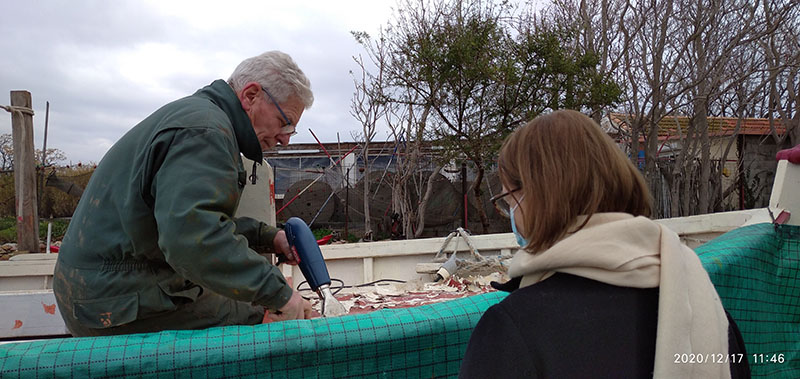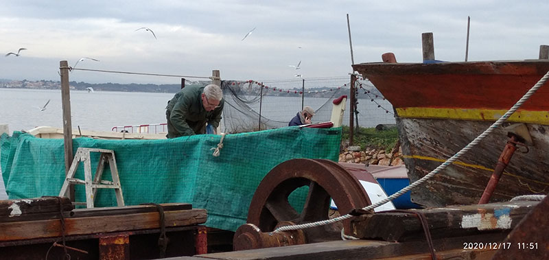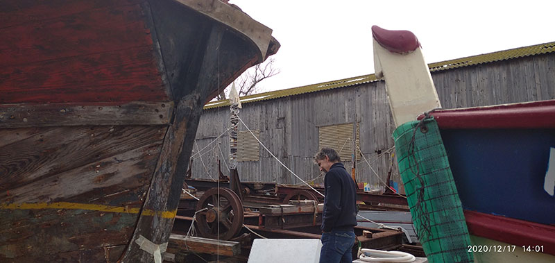 et puis un modeste charpentier arrive pour voir où en est le chantier, il vient de Narbonne, restaure un bateau boeuf, l’Espérance, ( il faut aller le voir) …, et une goélette mailhorquine…Yann Pajot lui même, total respect. Nous sommes trés contents de lui montrer l’Albatros,