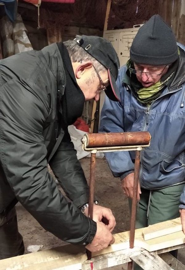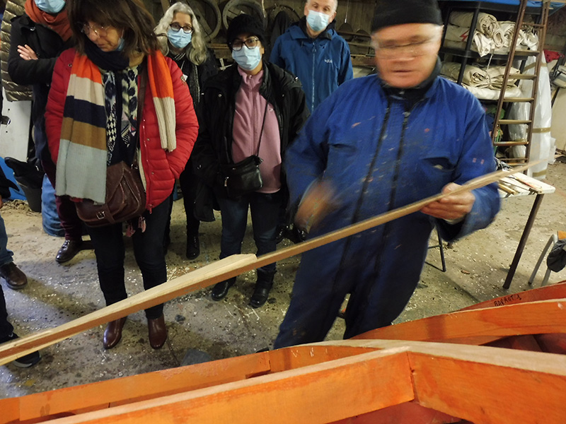 Ce 1er décembre, nous recevons des chercheurs du CNRS venus visiter notre chantier, et leur montrons un peu de nos savoir-faire.