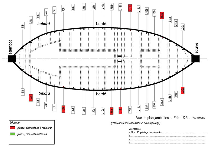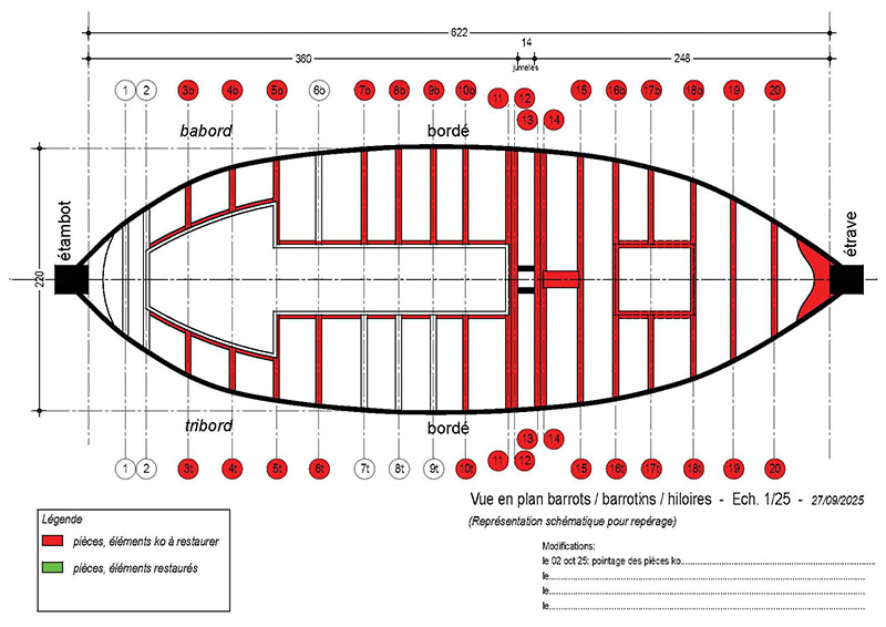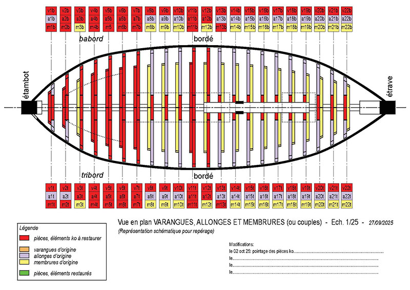 pont à découper pour accès aux barrots, barrotins , varangues, allonges, jambettes etc…
