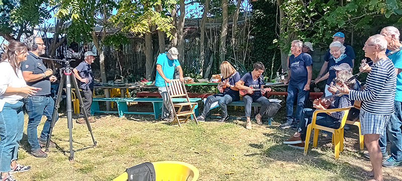FR3 vient nous interviewer; Fred et une collègue enregistrent la chorale qui se prépare pour Escale à Sète: