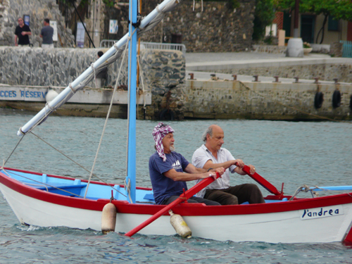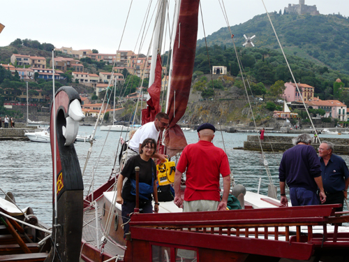Et grand merci à Bernard Banyuls et aux bénévoles de l’association de Collioure pour cette super rencontre et particulièrement à ces trois hommes courageux dans un bateau :